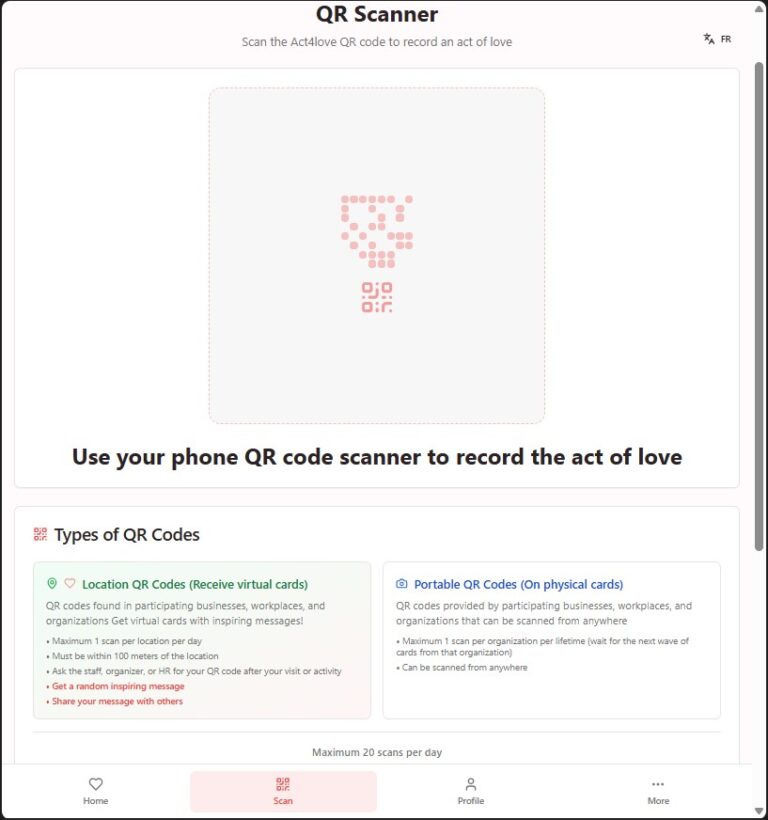 Learn how to use QR cards—both location-based and portable—to log and spread acts of love.